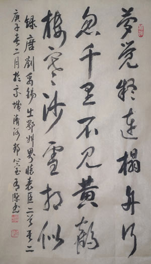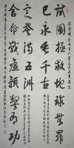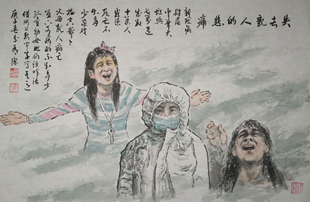 在众志成城、全民抗疫的关键日子里,106岁的老革命家、老作家马识途先生于2020年元宵填了《借调忆秦娥·元宵》——配上您的抗疫情书画艺术作品,给观赏者带来很强的视觉冲击力。实践了艺术家的艺术为人民服务的伟大终极目标,祝福您在辛勤的艺术劳动中,给予我们品嘗到的文化大餐。(另,马识途的儿子马华生是我在四川美院的同班同学。)