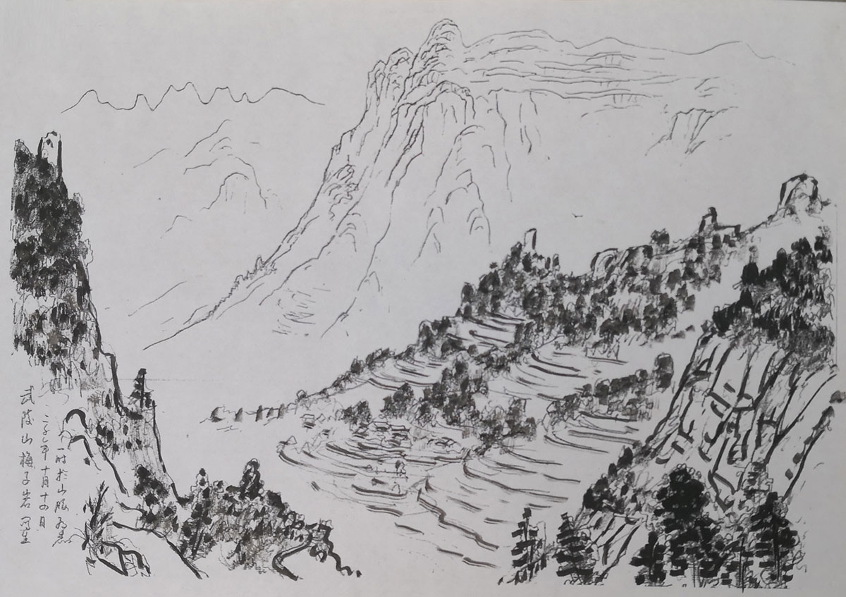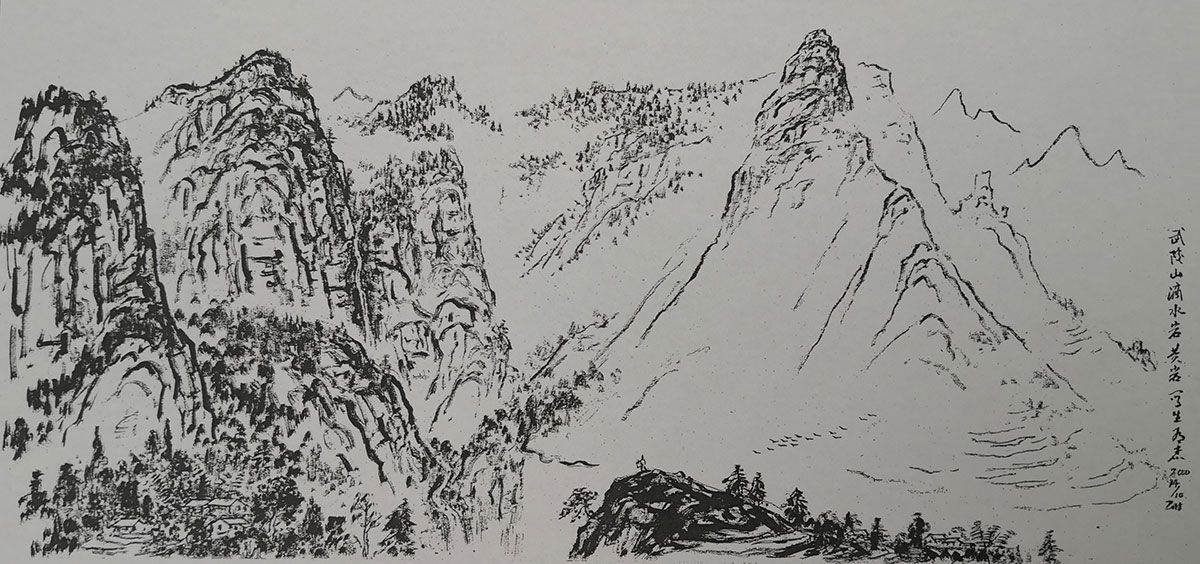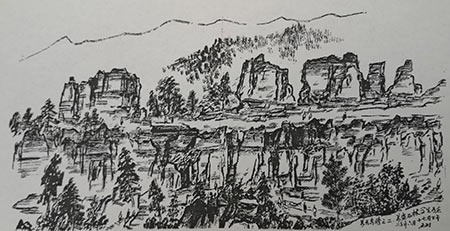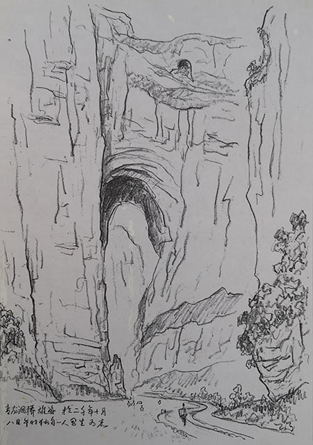很长一段时间没有见到陈有杰,当我与他见面时,才知道他已独自一人走遍了渝州东西南北的山山水水,记录下许多令人叹服的山水胜景。他给我介绍每一幅速写,讲述他写生途中令人难忘的经历,收获的喜悦溢于言表。在石柱,为了寻求写生的最佳角度,他在热情的乡政府领导的帮助下,换上村支书为他准备的胶鞋,攀上陡峭的山崖。待画完几幅速写时,天色已晚,他和两个相伴的农村少年摸黑下山,跌了无数个跟斗。为了领悟奇特的自然风貌,陈有杰忍饥挨饿长途跋涉于沟壑岗峦之间。他在武隆天生桥附近山上写生,筑路民工看到他不辞辛劳,专注地收集素材,便热情地邀请他一起吃饭,尽管饭菜十分简单,却使陈有杰暖在心窝,难以忘怀,也更增添了他" 搜尽奇峰打草稿"的决心。